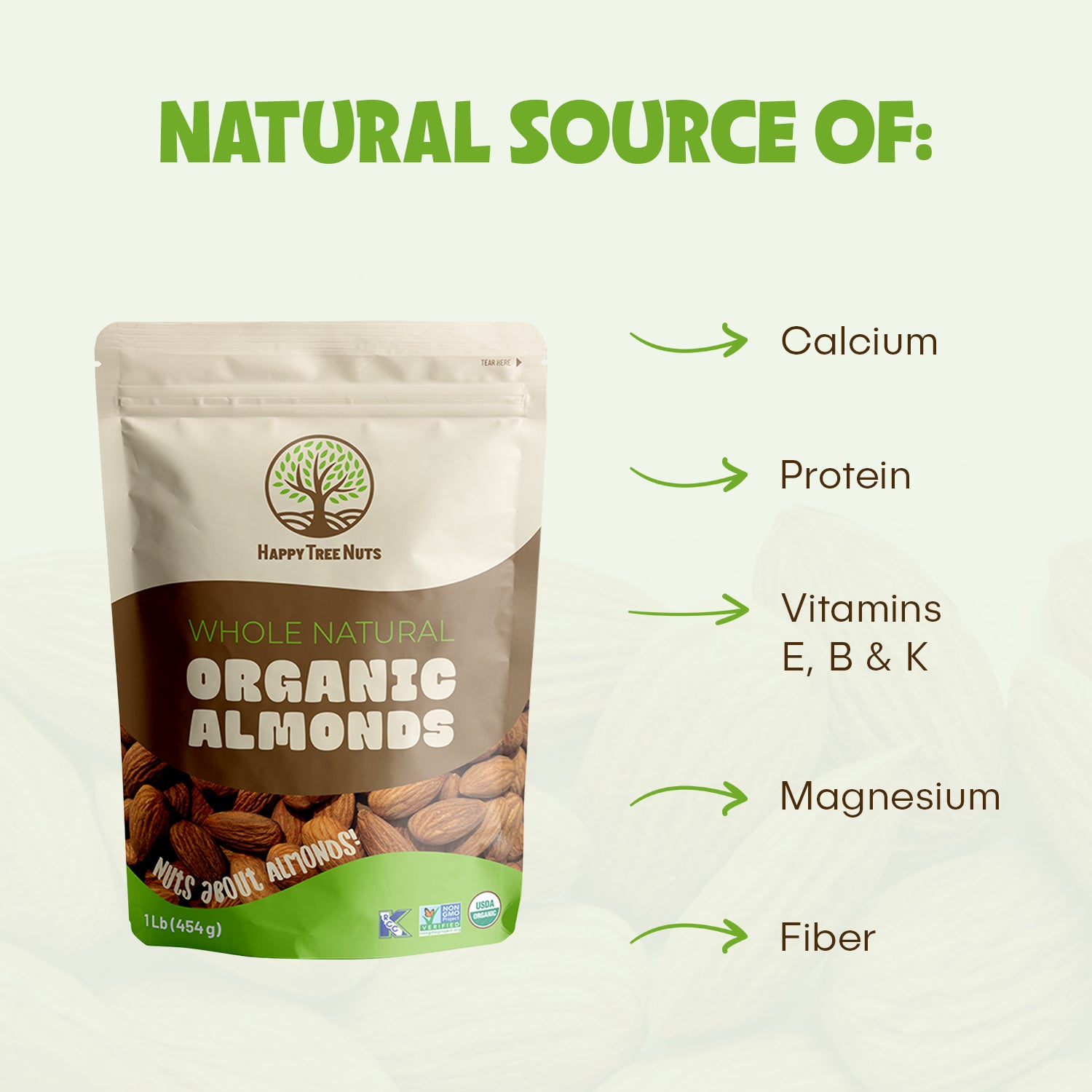 Happy Tree Nuts Organic Whole Natural Almonds